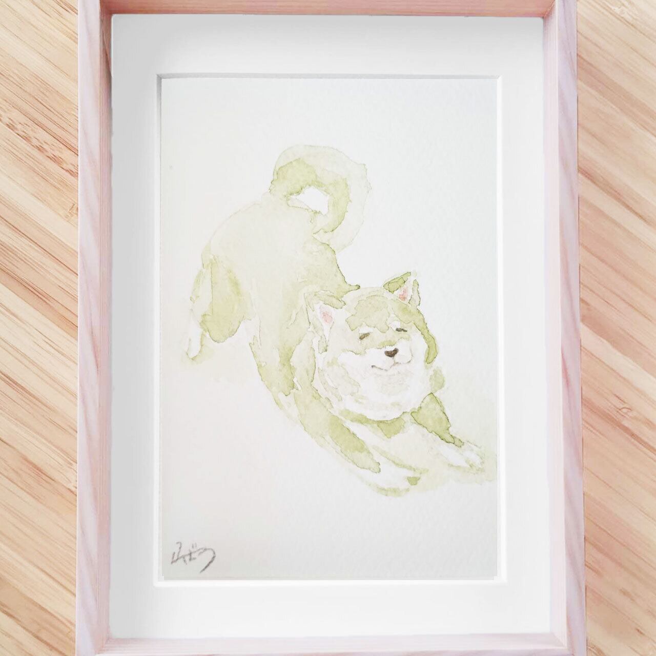 さて、お見送りしてやるか/柴犬【水彩画・原画(額縁付き)】1点物