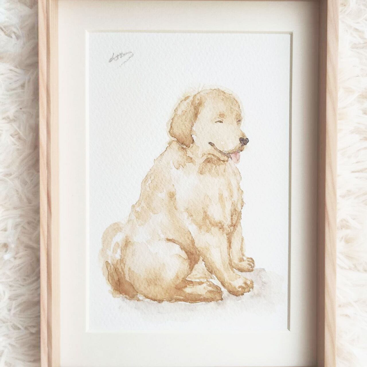 ほめられちゃった/ゴールデンレトリバー【水彩画・原画(額縁付き)】1点物