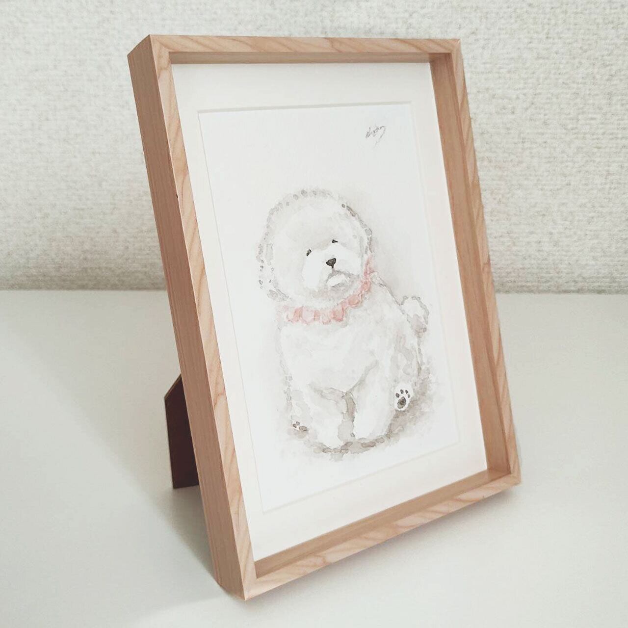 お着替えしたの/ビションフリーゼ【水彩画・原画(額縁付き)】1点物